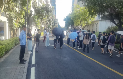 督查过程中,学工队伍聚焦突出问题开展整治,对穿拖鞋进入教学区域的行为及时疏导,引导学生树立文明行为意识,对迟到同学进行当面思想教育,助力其形成良好学习习惯。