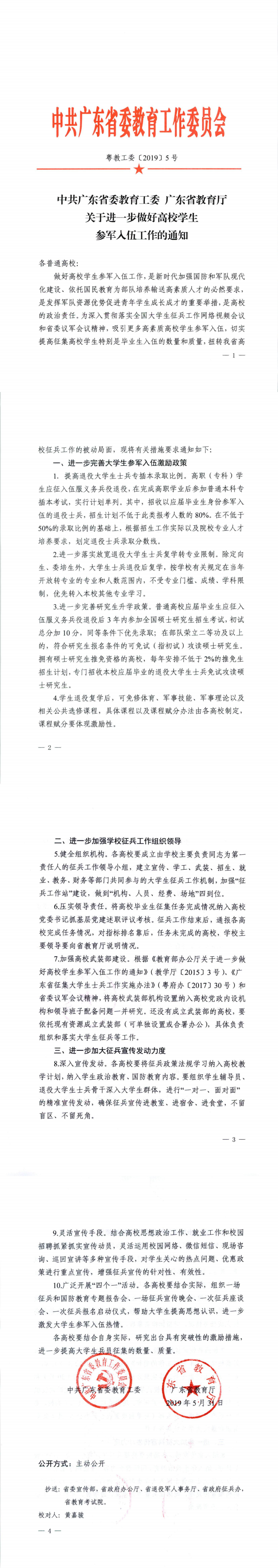 关于转发:中共广东省委教育工委广东省教育厅《关于进一步做好高校学生参军入伍工作的通知》