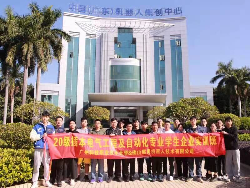 为了执行校企共同制定人才培养方案中的校企课程,电气工程及自动化专业20级专插本1班在原有校企课程请企业工程师进校上课外,2021年11月,该班在信息工程学院领导的大力支持下,该班全体学生来到中国(广东)机器人集创中心园区的佛山犀灵机器人科技有限公司现场进行进行了为期2周的企业实训,将企业实际应用高技能融入教学,响应国家职业教育校企合作共同培养高素质高技能人才。整个实训课程干货满满,同学们获益匪浅。