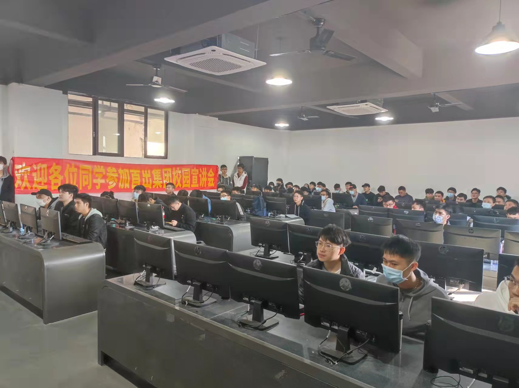 2021年12月2日上午,我院邀请广东首出网络科技有限公司前来校园进行宣讲招聘,本次宣讲主要面向20插本专业的学生。宣讲现场,首出集团面试官热烈欢迎各位同学的到来,鼓励各位同学踊跃参与面试、积极投递简历,为自己未来的职业规划选取一条适合自己的道路。