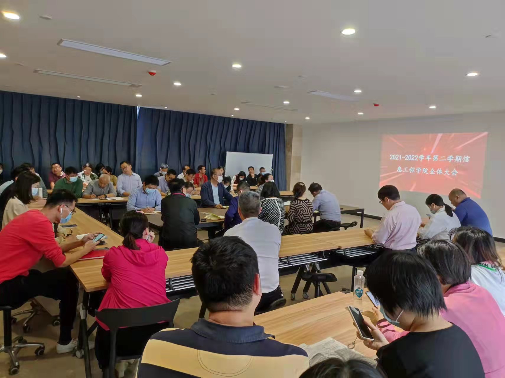2022年3月16日,信息工程学院召开2021-2022学年第二学期学院全体大会,信息工程学院陈政石院长、兰娅勋副院长、肖琳书记以及我院全体教职工参加了本次会议。