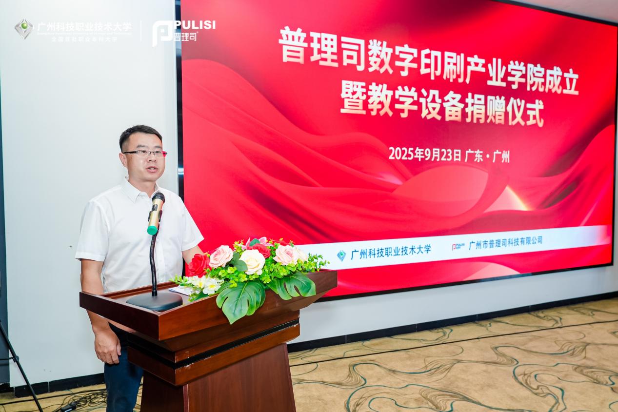 9月23日上午,广州市普理司科技有限公司与广州科技职业大学在学校图书馆5楼会议室隆重举行了“普理司数字印刷产业学院及教学设备捐赠”的签约揭牌仪式。广州市普理司科技有限公司董事长林小博、总经理刘璐,广州开发区才汇...