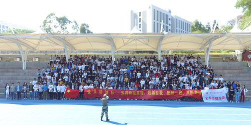 为提升党员队伍整体素质,践行社会主义核心价值观,充分发挥党员先锋模范带头作用。2017年11月1日下午2点,艺术传媒学院在黄觉结书记的带领下,以“实践检验真理、超越自我、团结一致、共同奋进”为主题的素质拓展活动在田径场顺利举行,艺媒学院全体教工党员及大一、大二在校学生共计600余人参加了此次活动。