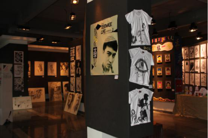我的2012.要三思”艺术沙龙活动暨学生作品展部分展区,学生们不仅在作品构思和创作中积极发挥了三思中的“思前”、“思后”、“思侧”,同时也在布展中做到了“三思”。