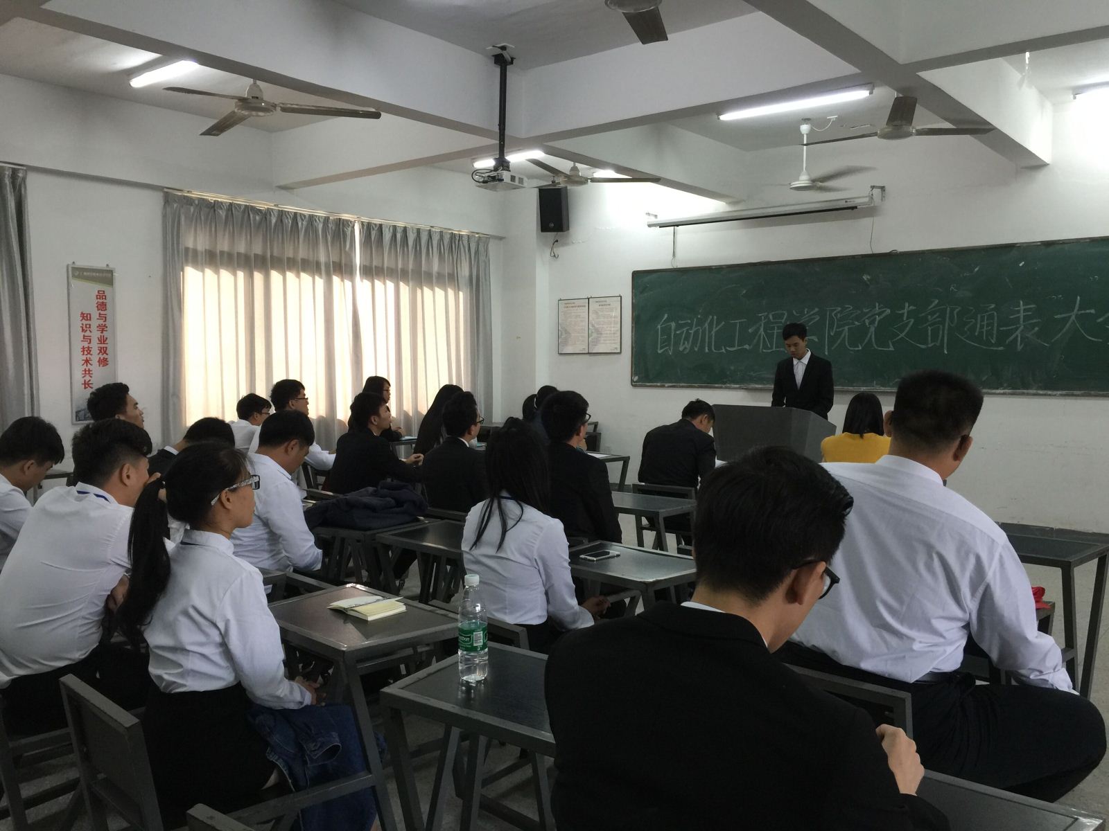2016年12月7日下午,自动化工程学院在7411课室召开通表大会。与会人员有我院党总支书记吴超、教师党员黄雪梅、教师党员胡高英以及学生党员、预备党员、入党积极分子。