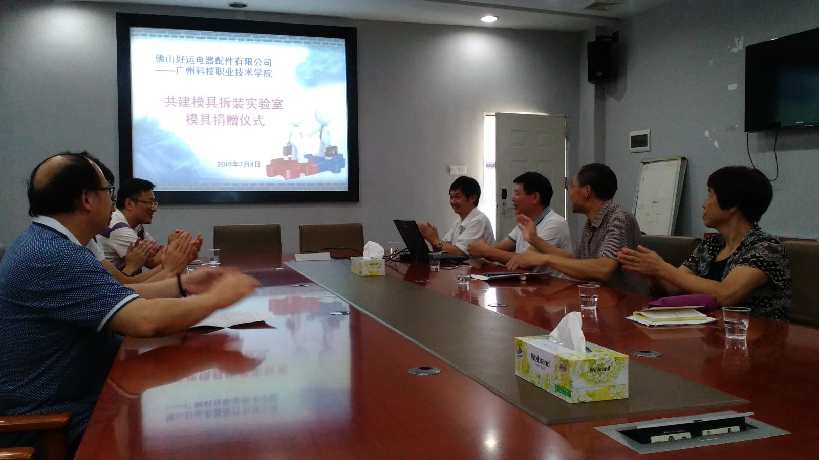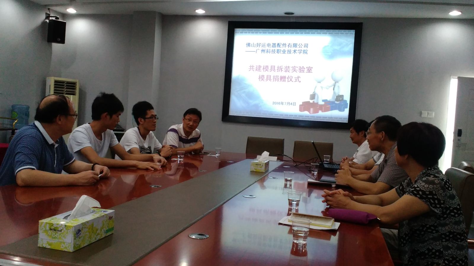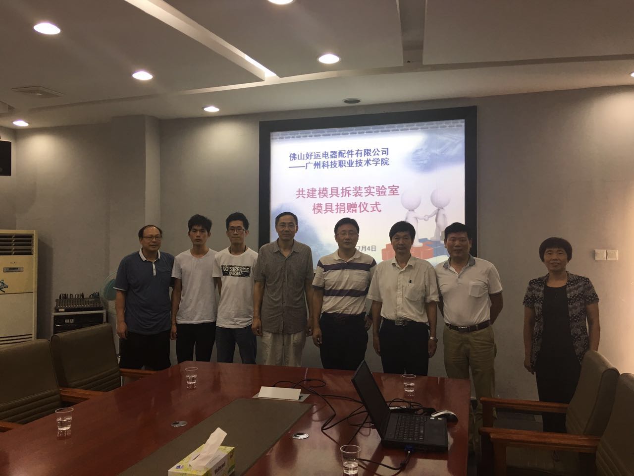 ,佛山好运电器配件有限公司向我院模具专业捐赠旧模具37套,价值13.5万元。捐赠仪式在我校四楼会议室进行,参加捐赠仪式的人有:佛山好运电器配件有限公司徐长林经理、人事部何泳祥、技术部朱社光;广州科技职业技术学院郧建国副校长、实习就业中心潘世华处长、自动化工程学院李昌权院长、程雨梅副院长、邓汝荣老师、黄雪梅老师。