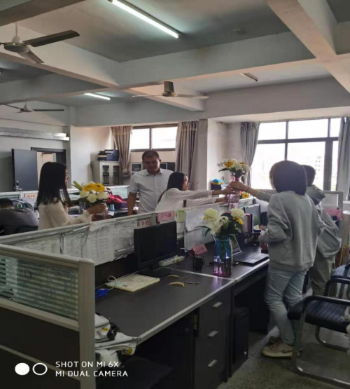 格桑花艺店是自动化工程学院17级机电一体化1班学生林友捷和其他同学一起创办的,目的是为了增加自己的创业经验。花店开业后生意红火,为了感谢学院老师的辛苦教导,林同学和合作伙伴不忘初心,特意开展了此次活动,老师们收到鲜花非常的开心,办公室里弥漫着淡淡的花香,老师能在一个优雅的环境里面办公,从而能够更好的开展教学工作。