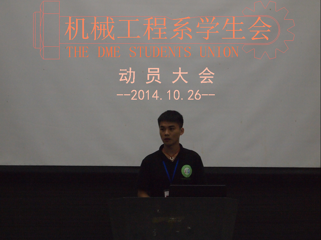 晚7:30分,我系学生会在阶梯一召开了“机械工程系第八届学生干部动员大会”。我系党支部书记吴超,团总支书记刘东及其第八届学生会全体学生干部出席了本次动员大会。本次会议由我系学生会秘书长朱俊宇主持。