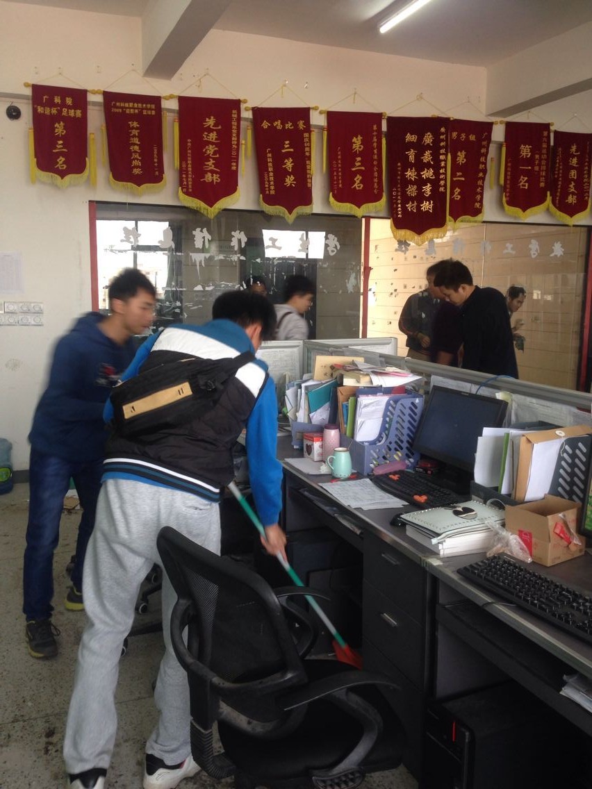 开学第一周,自动化工程学院团总支组织学生干事打扫办公室卫生,为老师们创造干净、整洁的办公环境。新学期团总支工作将从细微入手,从小事做起,为我院师生提供切实的点滴服务。虽然是打扫卫生的小事,但干事们积极投入其中,不怕脏不怕累。看着焕然一新的办公室,老师们均给予了赞赏。