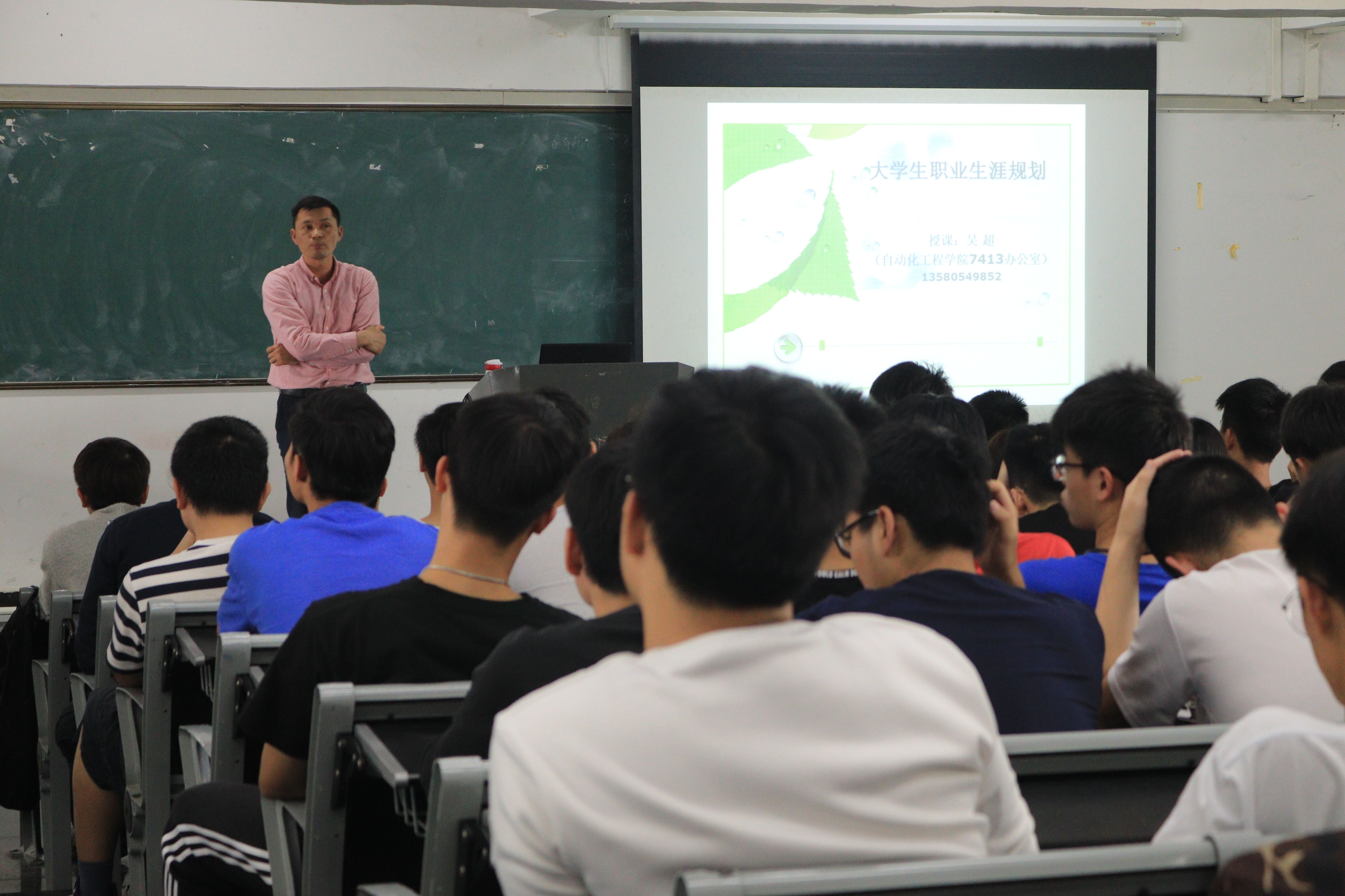 为了提高和强化高职学生对自己人生职业发展道路的规划,3月27日下午,自动化工程学院召开了一场题为“高职学生的人生发展之路如何进行职业规划”的讲座活动,自动化工程学院党总支副书记吴超做主题演讲,2018级188名专业学生到场参加活动。