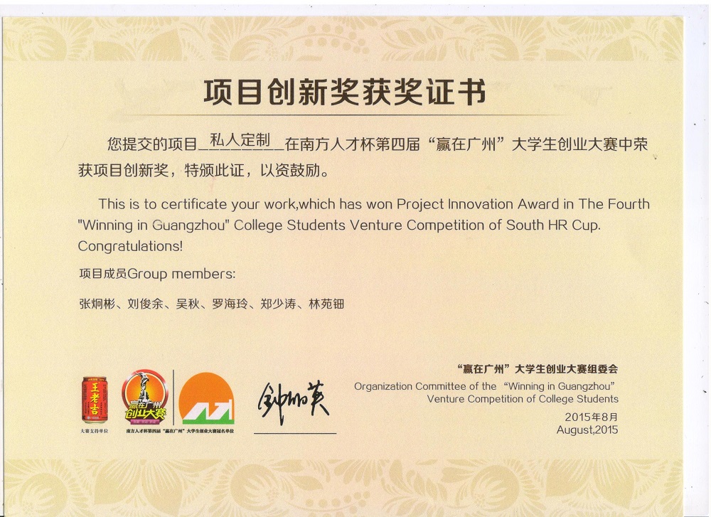 项目类别:大学生创新创业训练计划项目 项目负责人:张炯彬/陈毓秀/韦一文